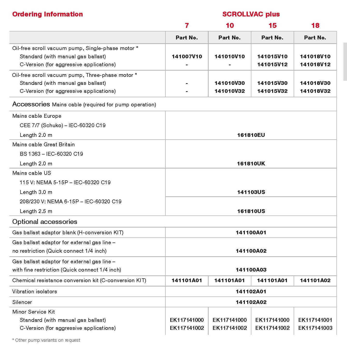 SCROLLVAC plus真空泵包含以下型號:SCROLLVAC 7 plus,SCROLLVAC 10 plus,SCROLLVAC 15 plus,SCROLLVAC 18 plus等